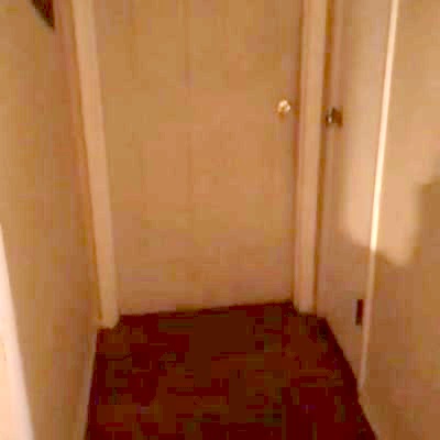 A young girl in a doorway says "Want to see me turn into a plushie?" then does a bad What the Fluff trick and leaves into a hallway then throws a plushie at the door in her place.