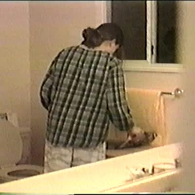 A young girl brings an iPod camera into a bathroom and drops it into the toilet. She dries the camera off with a towel. phone. iPhone.