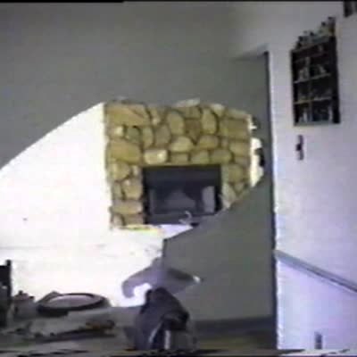 Safety video for wearing stilts while dry walling. Man falls hard (with recovery)