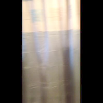 A man and woman wash their dog in a bathroom, then he gets away when the man tries to dry him. The woman falls back into the bathtub and takes the shower curtain down with her.