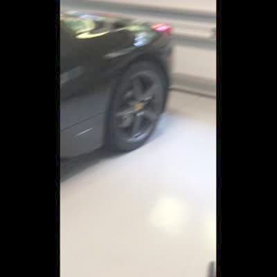 A young girl enters the garage to see the birthday present that her parents got her. She walks past the new bike and goes straight towards the car and gets excited because she thinks the Ferrari is her present.