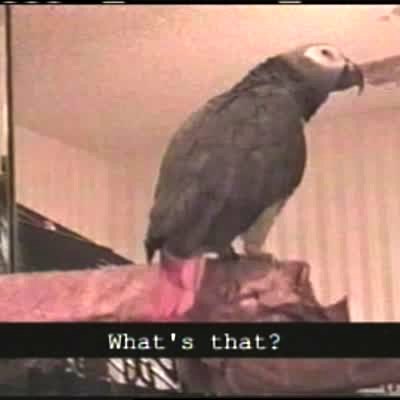 Parrot says "Are you talking to me?" "Do I amuse you?" "Excuse me?" Trash talking parrot. Bird