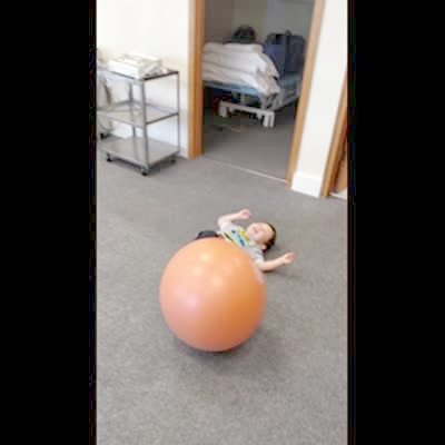 A young girl dances with an exercise ball and tries to land on it only to slam into the ground. Music rights not cleared.