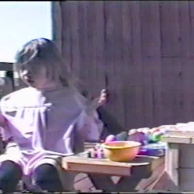 Tot girl paints face on Easter Egg and then drops it. She screams "your face, your face."