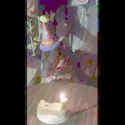 A teen girl stands in a backyard with her family, young boys and girls, and men and women, for her birthday party. Her mother walks out with a tray of cupcakes with lit candles, and her family starts to sing "Happy Birthday". The cupcakes all slide off the tray and land on the ground.