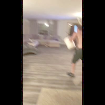 Two cats chase after a fly in a bathroom when one leaps from the sink and rams into the wall.