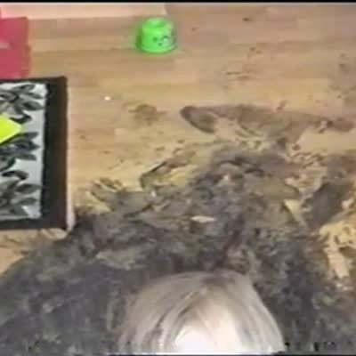 A tube of blue food dye explodes on a young girl when she squeezes it too hard as she tries to color a blob of slime on the dinner table. Assignment America: Slime. Action starts at 1:20.