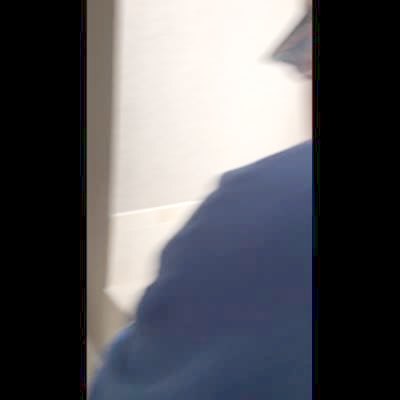 A woman screams when a frog jumps off a patio door into the house at night when she touches it because she thinks it's a toy.