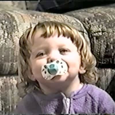 DOG. Funny-looking black dog licks window. Date on screen 1992. Funny face.