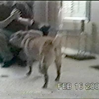 Chihuahua puppy dog lifts back legs as she eats, kind of weird but cute. Clip repeats later on tape at 5:15:31
