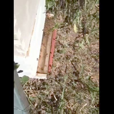 A man looks at bees outdoors and talks about how gentle they are before they start to sting him.