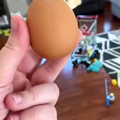 A woman does a challenge with a tot girl ands says toddlers should be "surprisingly gentle" with an egg, then the girl drops the egg on the living room floor.