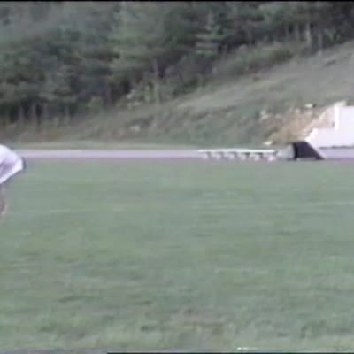 Boy plays goalie in a soccer match. He catches a ball but then runs head first into the goal post. Boy falls. No recovery.