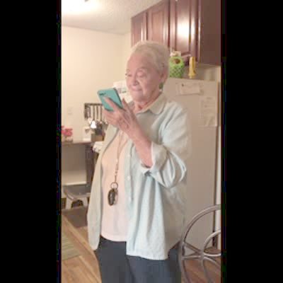 A woman and her teen granddaughter face swap and the teen girl says that she looks like a real estate person.