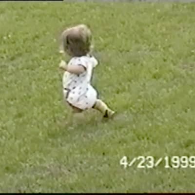 Baby walking in grass trips, does a face plant headstand and falls over.