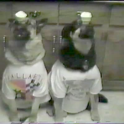 AA: ICE CREAM. 2 dogs balance IC cones on their noses.