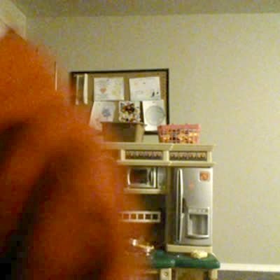 A young boy opens a screen door on a windy day, and he hangs from the doorknob as it swings open. Security footage.