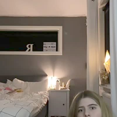 A teen girl puts makeup on at a vanity when the chair breaks and she crashes to the floor.