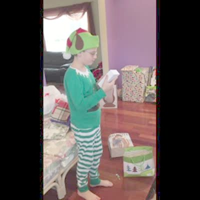 A young boy gets an iPhone for Christmas and drops it on the floor.