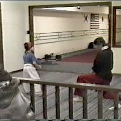 A martial arts / karate instructor gets kicked in the face when a boy misses the wood that he was suppossed to be breaking.