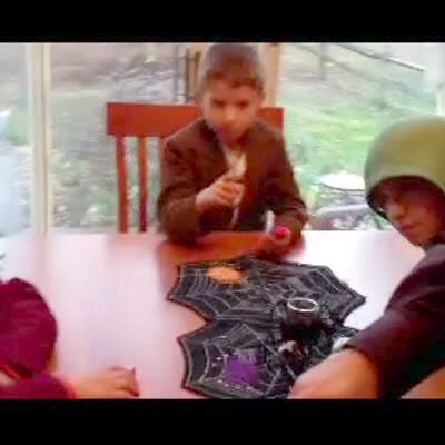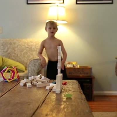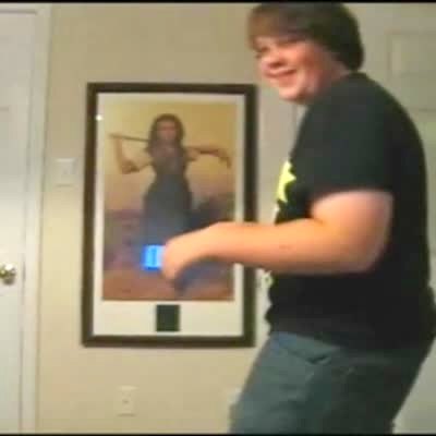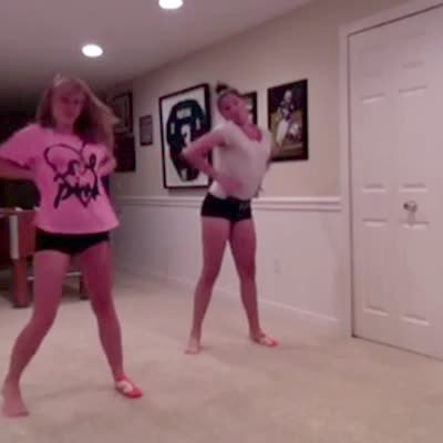 A young girl dances in the living room. Her brother suddenly falls off a couch and kicks her in the face and they both fall. Music rights not cleared.