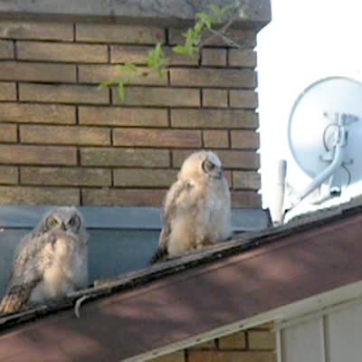 "Foul Owl" Two owls fly off of a roof while one stays. The second one pees on the last before flying away.