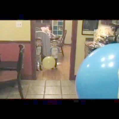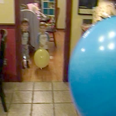Little boy doesn't want mom to let the air out of a balloon because he's afraid of the noise. She tricks him & lets the air out, boy get startled & cries, but recovers.