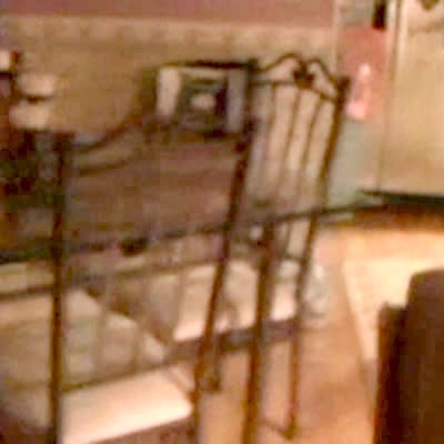 Chihuahua tries to attack girl that is sitting on banister of stairs. Railing. He tries to bite her foot. Dog won't let girl get off the railing
