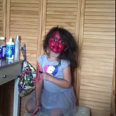 "Whole Lotta Lipstick" A tot girl does a makeup tutorial at home, and she puts on lots of eyeshadow and blush, then she puts on too much lipstick. She uses her own spit to wipe it off, but she puts too much on again and says "definitely need a wipe."