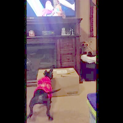 A man walks into an office where he sees a large remote controlled spider walk across the floor and he screams.