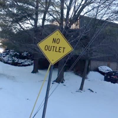 Funny sign: A man films a sign for a cemetery and then one that says "no outlet."