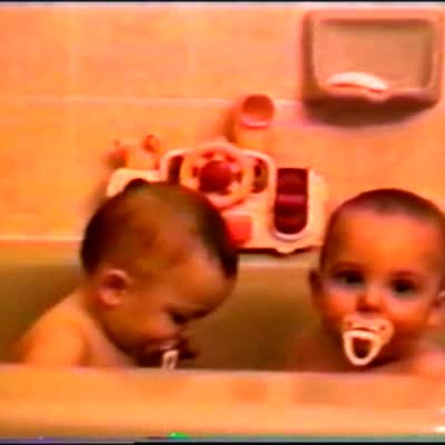 Pacifier Switch. Baby's in bathtub switch pacifiers back and forth.