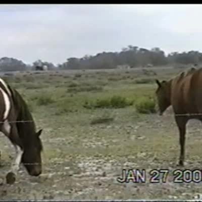 Woman filming horses as she drives by. One horse keeps farting.