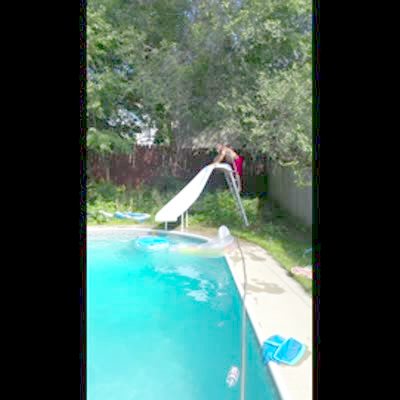 2 teen girls try to do a tandem flip move, they fall over onto their heads in the driveway.