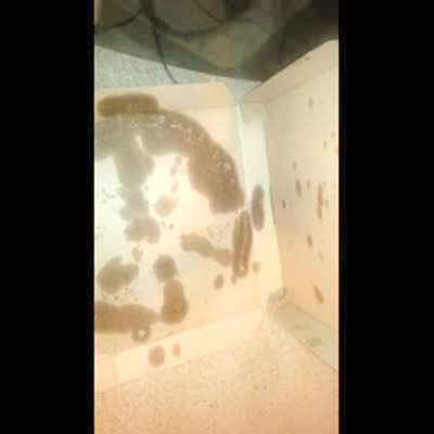 A woman comes home to find trash scattered all over her floor. She wonders aloud who could have done it when her dog runs in with a pizza box stuck on her head. The dog lies down innocently and covers her face with the box.