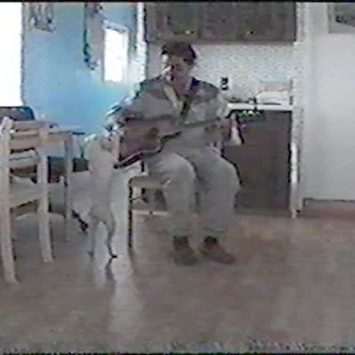 A woman and a man play the "Center of Gravity" challenge in the living room. The woman tricks the man into falling on his chest. Everyone laughs. Christmas.