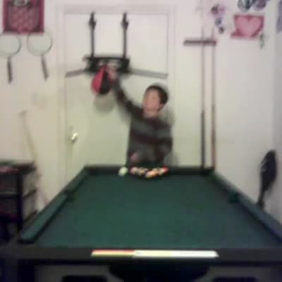 A boy drops a tennis ball on top of a basketball at home and the ball rebounds and hits him in the groin.