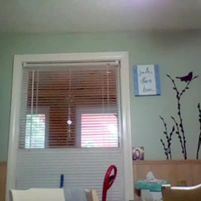A teen girl filming a vlog of her playing the guitar bumps the wall causing the curtain rod to fall off a nearby window.
