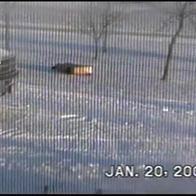 "Feline Makes a Bee Line" A cat bursts through a screen window when it sees a cat outside. No audio - from a security camera.