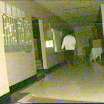 BABY SHEEP runs into camera. 1st in barn; then on porch. NOWHERE TO RUN