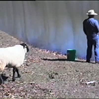 A woman asks a sheep if it's good or bad and the sheep bleats, "Bad!"
