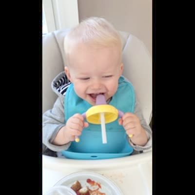 "Sippy Cup Sitter" A young boy spits water on a couch. A woman tells him to stop and the boy spits water on a dog. The woman tries to take the boy's cup of water but the boy chases her away with water in his mouth ready to spit on her.