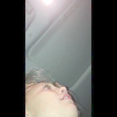 A woman records herself in her car, then she yells "spider" and leans back in her seat.