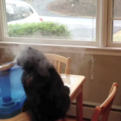 Man mows his lawn. His lawn mower is blowing huge amounts of smoke. His neighbors complain but he keeps mowing. The smoke is so thick you can't see him.