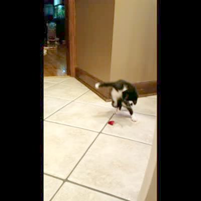 A tot boy in a living room carries a saran plastic wrap box to his mom and points to the strawberry picture on it and tells her that it's a snack. He opens the box and gasps and says "no strawberries!"
