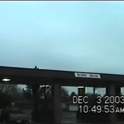 A man trips and falls into an iron fence, as he tries to get to his ringing phone and says, "wow, that sucked." Security footage.
