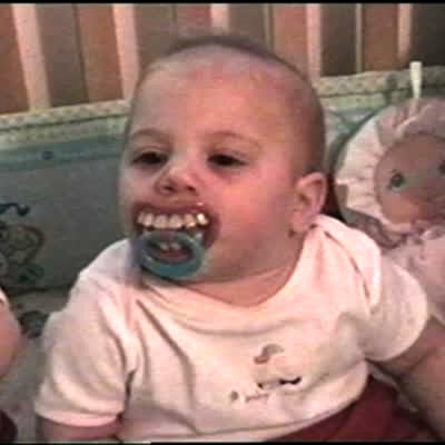 Baby girl puts her entire hand/ fist in her mouth. Weird looking