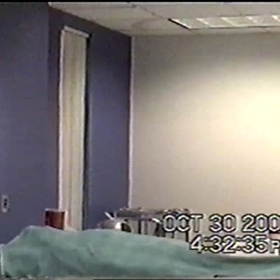 Medical students scare teacher. Man lays under a sheet on the table & when the female doctor lifts up the sheet, he scares her. Woman attacks man with a pillow. Anatomy class. Practical joke. Hospital.