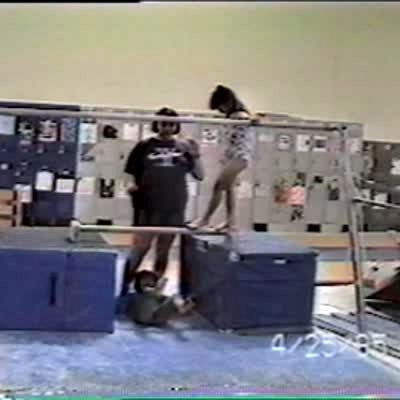 Gymnastic girl drops like a rock off uneven bars when teacher lets go of her