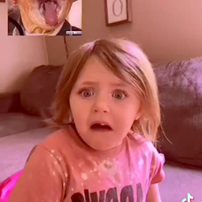 A mom tells a tot girl that her new teacher is on the phone and wants to meet her. As the tot looks into the phone, it reveals a spooky photo of a scary person. She stops in her tracks and stares blankly ahead with her mouth open. She then runs away and yells, "not my teacher!" TikTok.